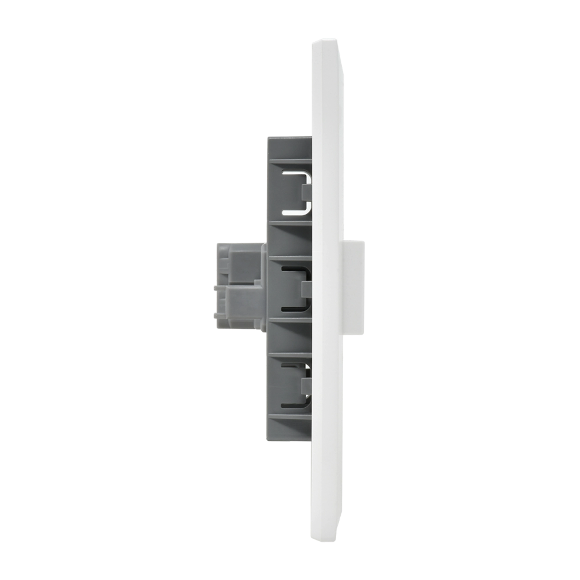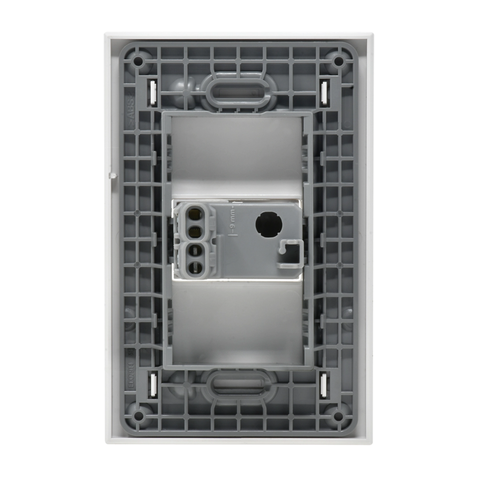 El cuerpo está fabricado en policarbonato autoextinguible y libre de halógenos, aportando mayor seguridad frente a sobrecalentamientos. Su mecanismo de sujeción facilita una instalación firme y rápida en cajas eléctricas estándar.