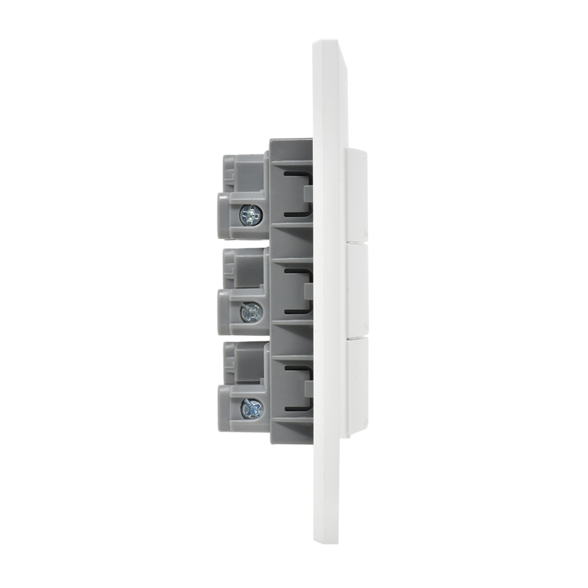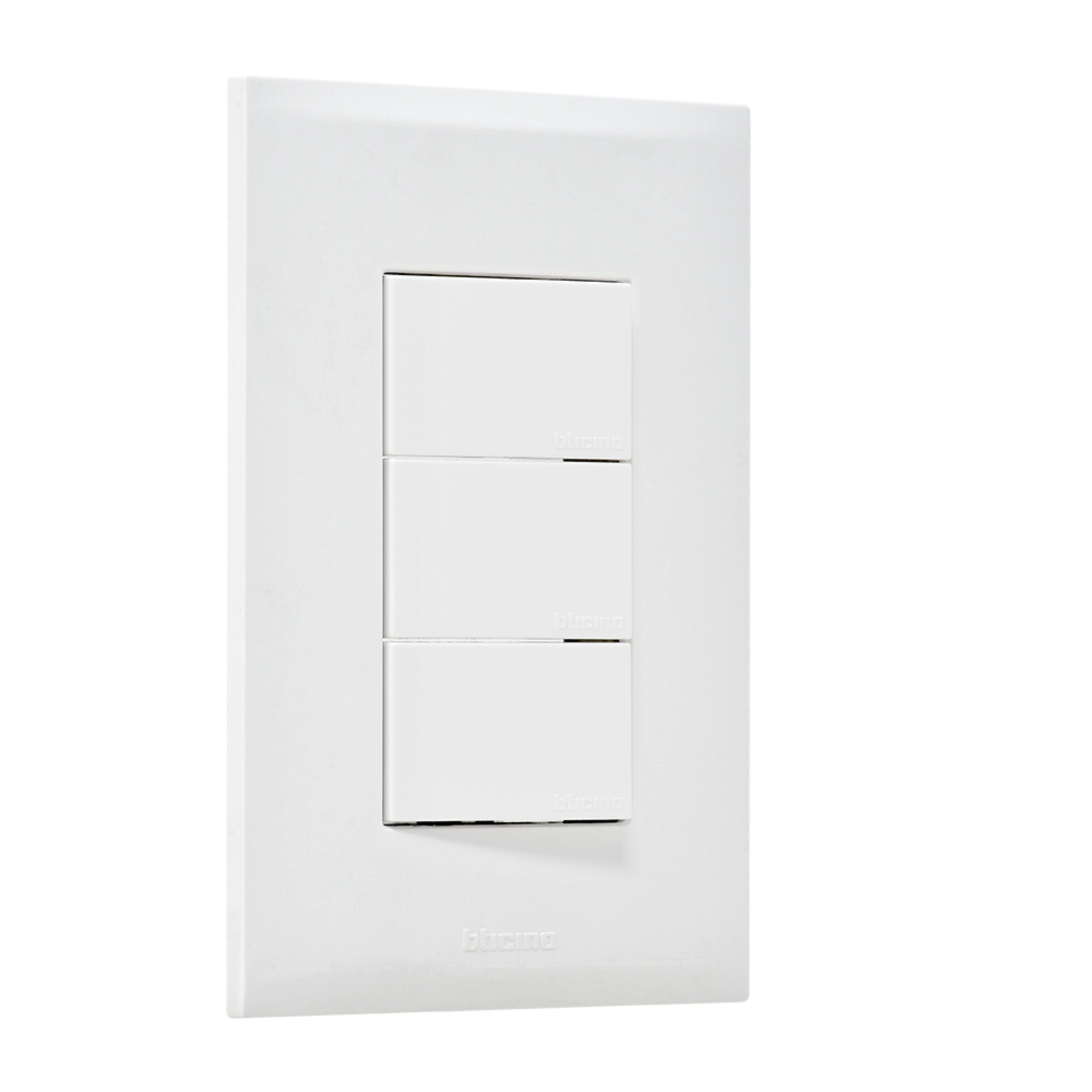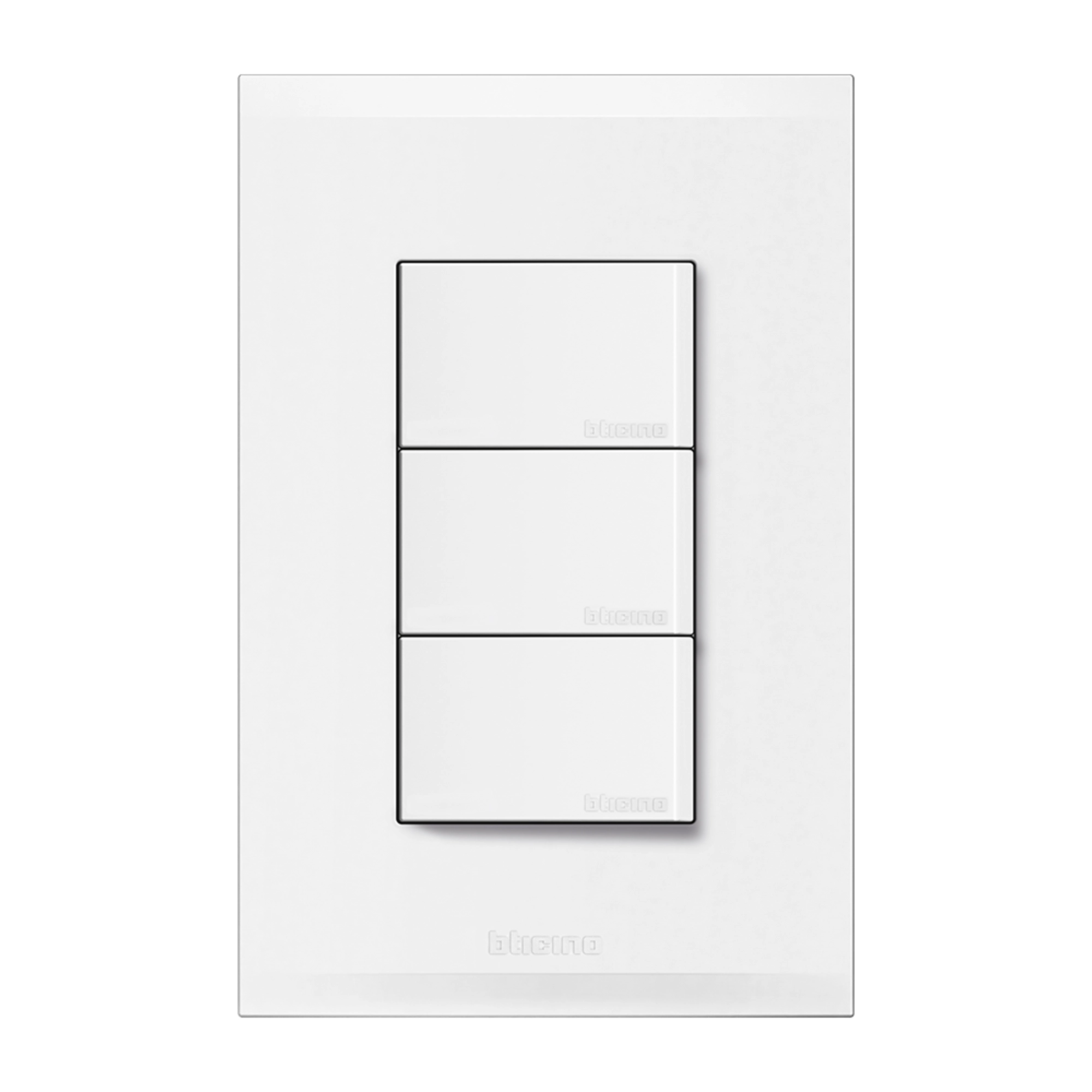 La placa FZ2300B de la línea Forza 2 de bticino integra tres interruptores sencillos en un solo conjunto, permitiendo el control independiente de tres circuitos de iluminación desde una misma ubicación. Es una solución funcional para áreas amplias, pasillos, salas, oficinas o espacios donde se requiere dividir la iluminación por zonas.