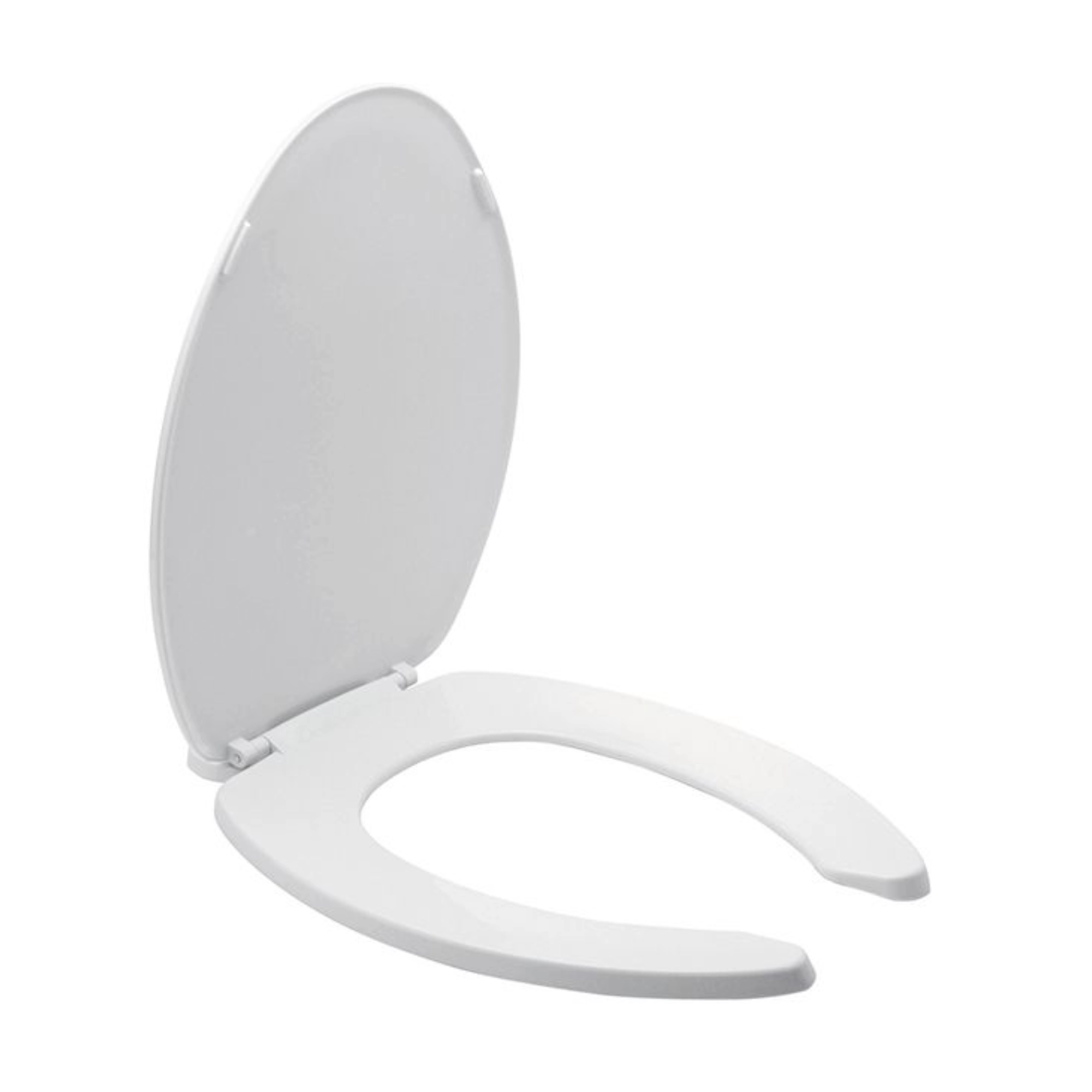 Este asiento elongado para WC está diseñado para sanitarios de formato elongado, ofreciendo una solución funcional para baños residenciales y comerciales. Cuenta con frente abierto y cierre estándar, adecuado para instalaciones donde no se requiere sistema de caída lenta.