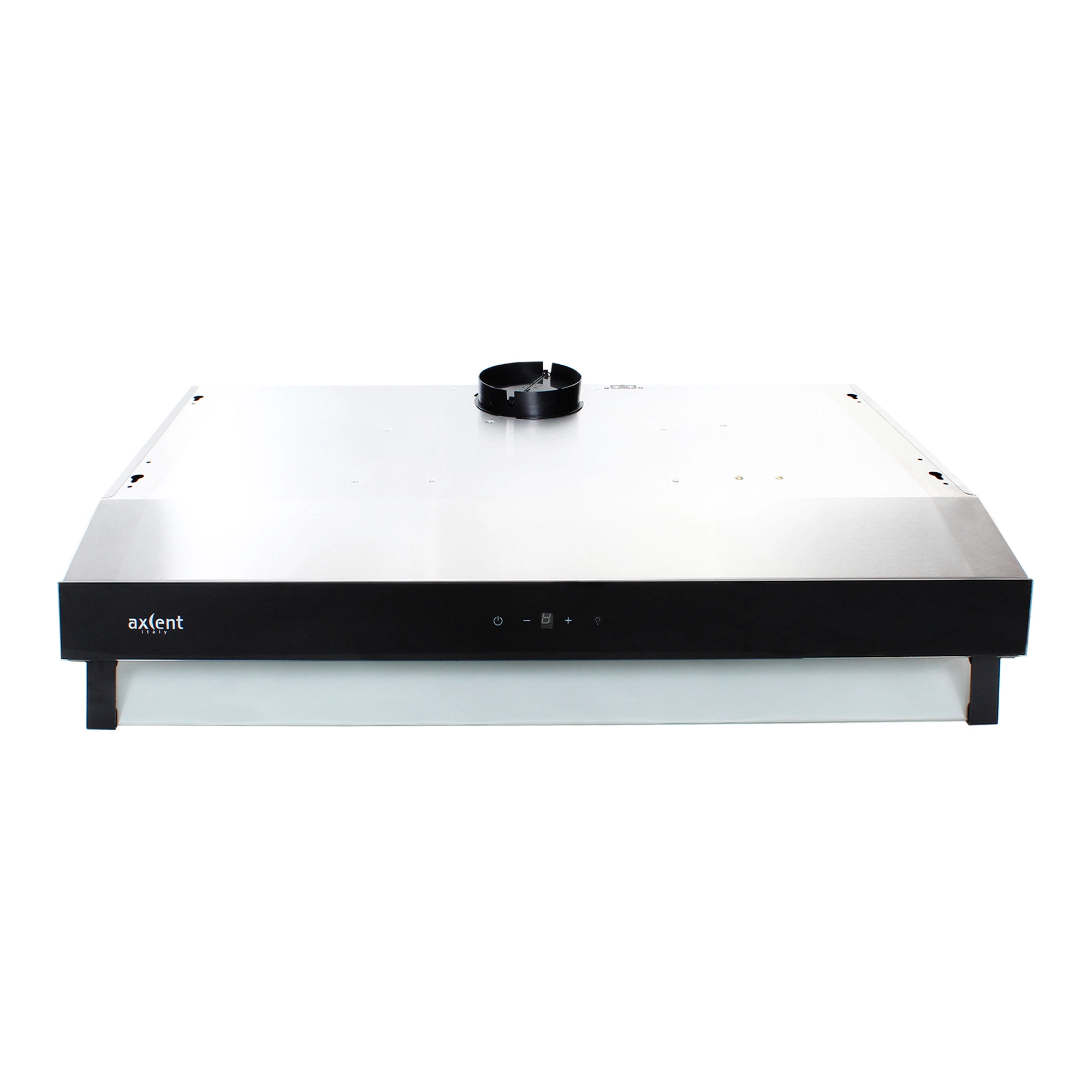 Campana de pared de 80 centímetros diseñada para instalación visible sobre parrilla o estufa. El modelo Raffaello de Axcent incorpora panel digital y tres velocidades para ajustar el nivel de extracción según el uso.