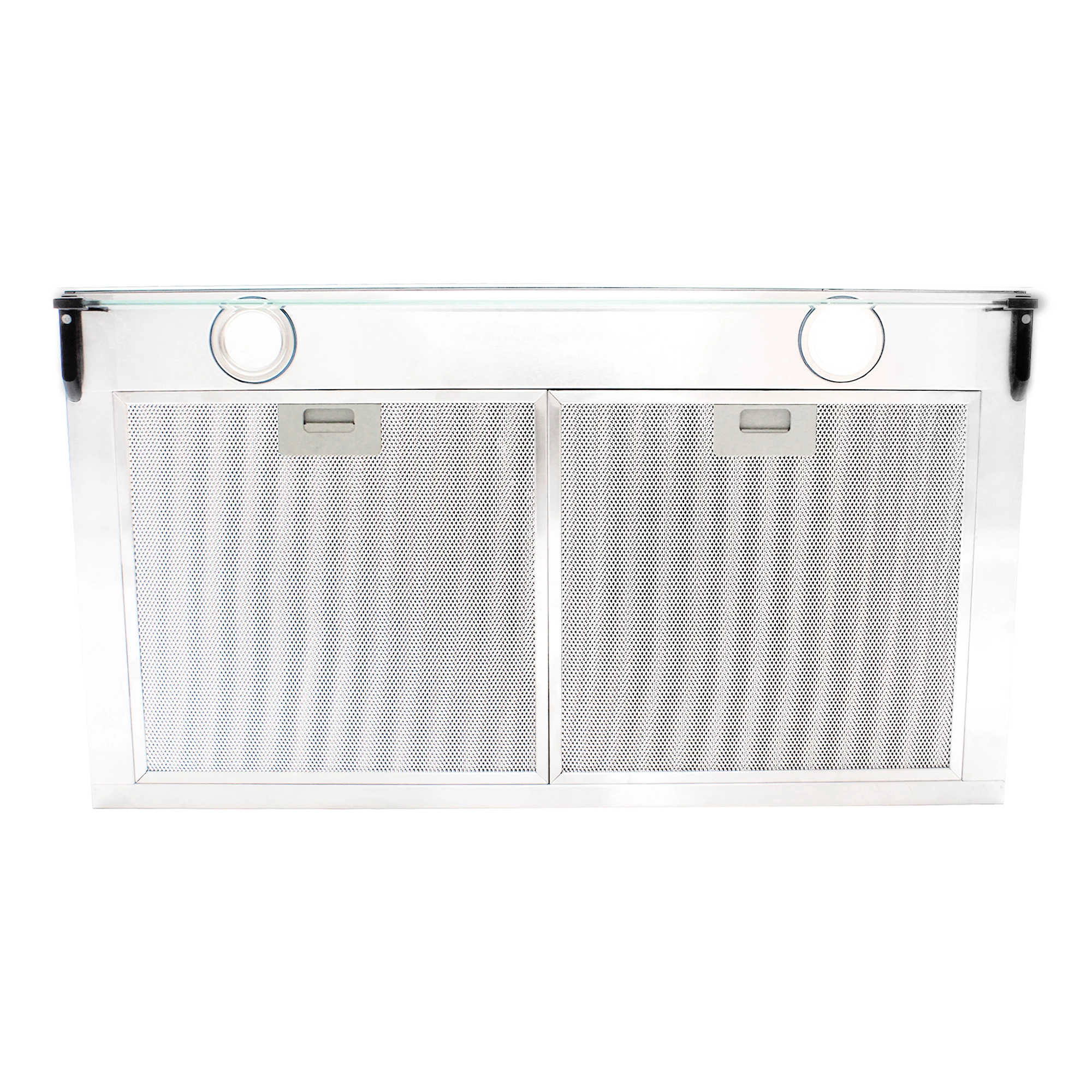 Integra un filtro de carbón de tres capas para operar en modo de recirculación del aire cuando no es posible instalar salida al exterior. Su frente combina acero inoxidable con cristal templado para un acabado limpio y moderno.
