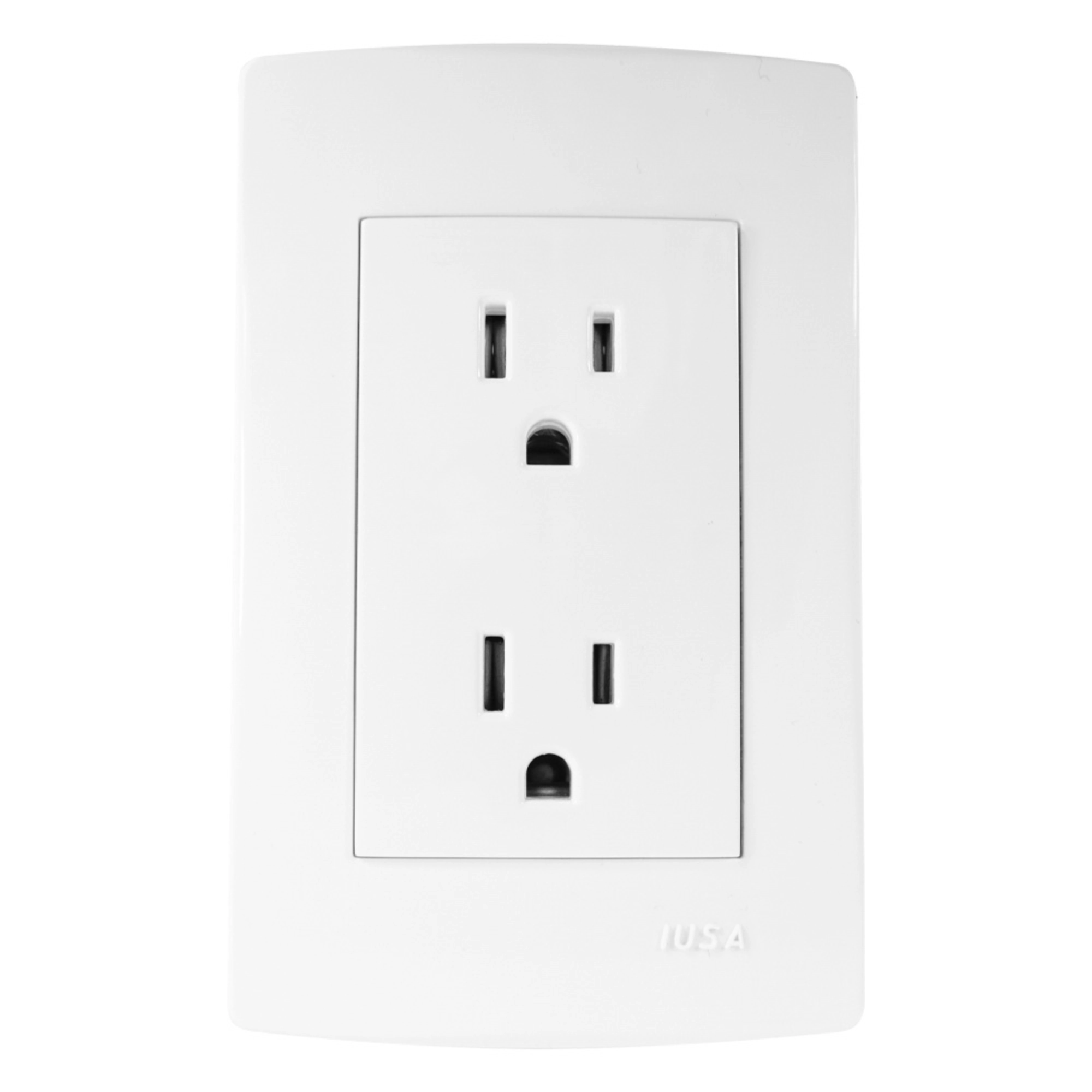 La placa armada de dos contactos IUSA modelo 217879 está diseñada para instalaciones eléctricas residenciales donde se requiere un punto de conexión para equipos o aparatos eléctricos. Su diseño integra dos tomacorrientes polarizados con conexión a tierra, permitiendo una instalación práctica en muros o cajas eléctricas estándar.