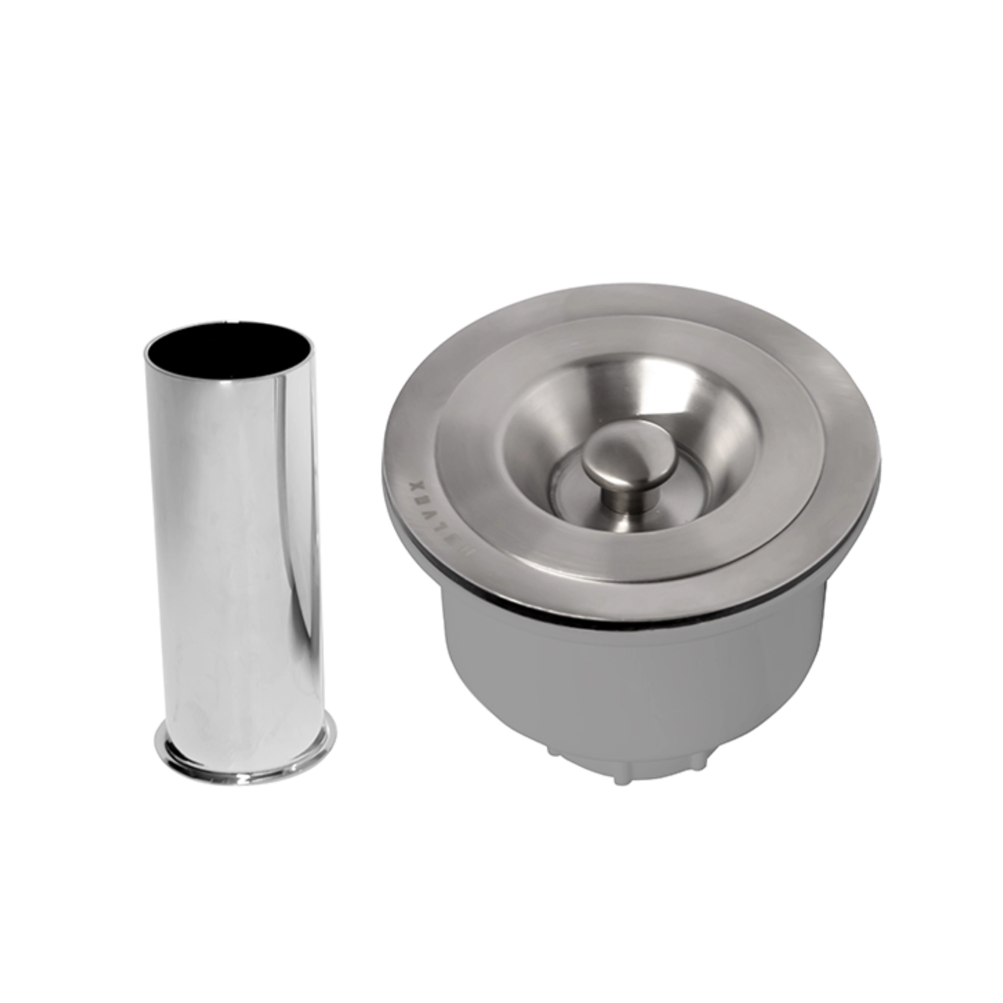 La canastilla removible, el tapón de fregadero y el cuerpo de la coladera están fabricados en acero inoxidable, material resistente a la corrosión y adecuado para contacto constante con agua. El cuerpo de la contracanasta está fabricado en polipropileno.