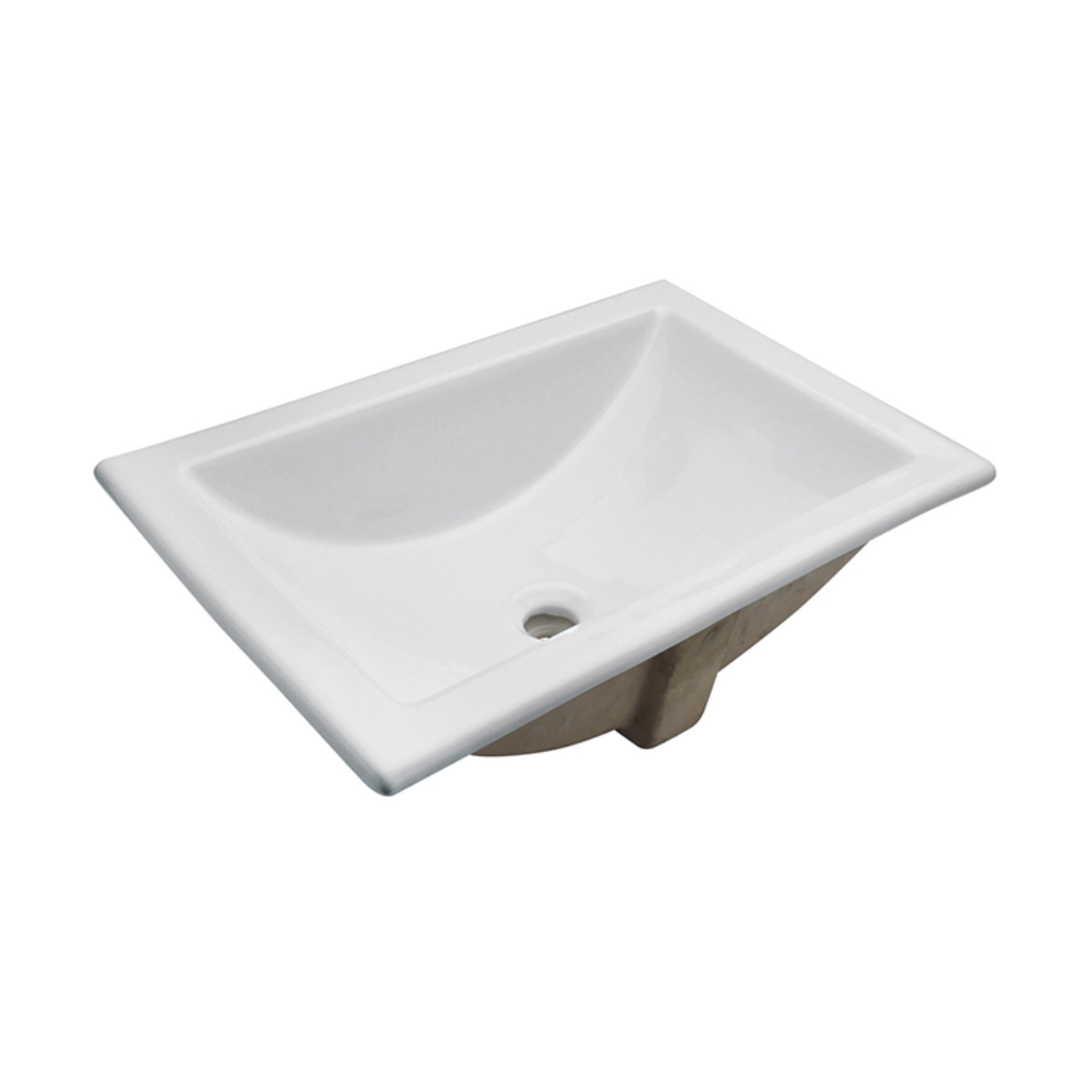 Lavabo de sobrecubierta Helvex LV MARCUS fabricado en cerámica de alto brillo color blanco. Diseño rectangular con rebosadero integrado para instalación empotrada en cubierta.