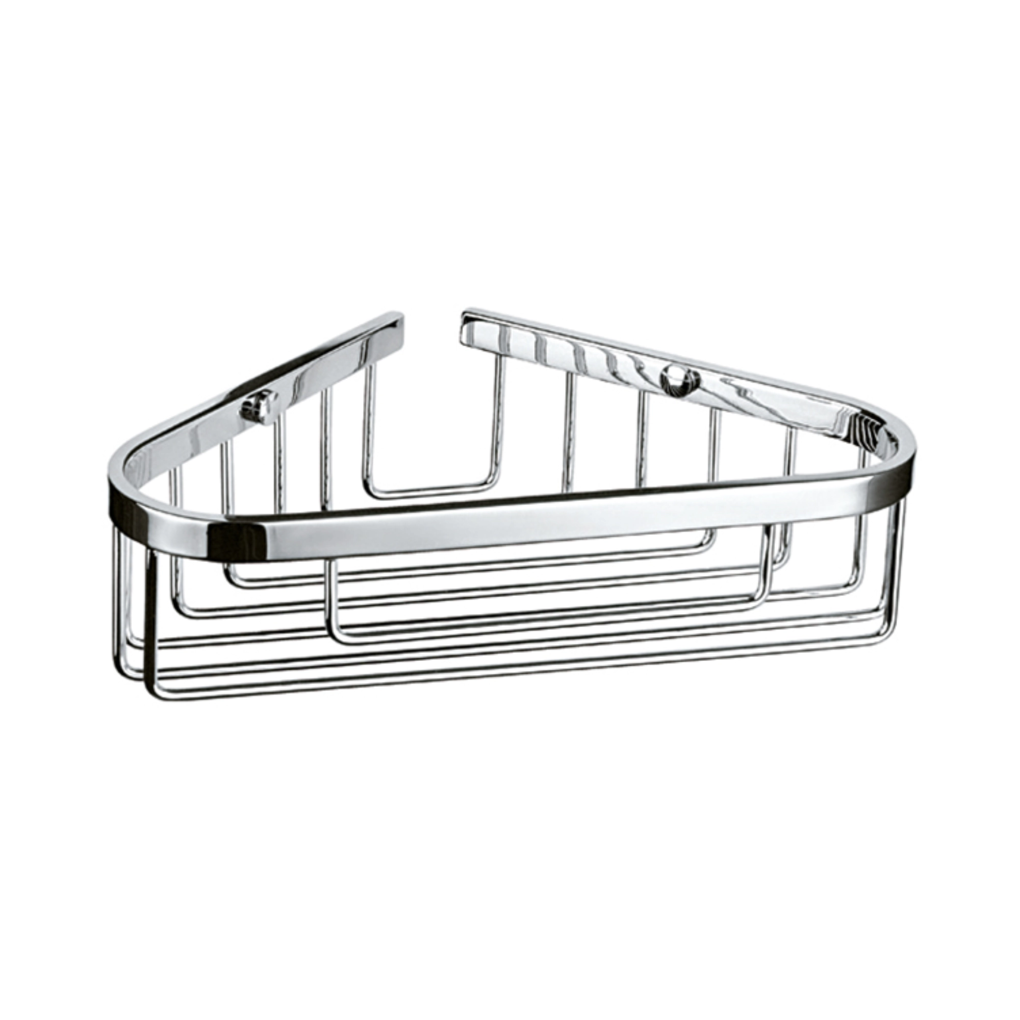 La repisa de rejilla esquinera Helvex modelo REJ-02 es un accesorio de baño diseñado para colocar en esquinas, optimizando el espacio disponible en regaderas o muros húmedos. Su formato de un solo nivel permite mantener productos de uso diario organizados y con fácil acceso.